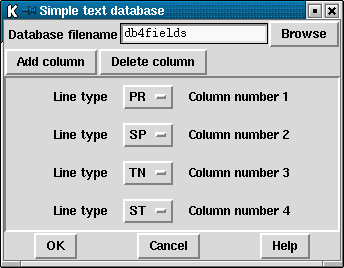 The "Ok" button will accept this configuration and will also write the details to the current pregap4 configuration file. To disable a previously setup Simple Database Configuration press delete until there are no line types listed and then press Ok once more.
